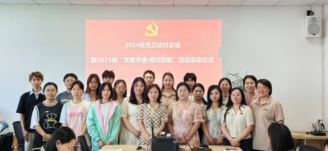 随后,在全场师生的共同见证下,2025级“党暖学途・结对助航”党员结对活动正式启动。马冯莉副书记宣读党支部与学生结对名单,并依次上台合影留念。