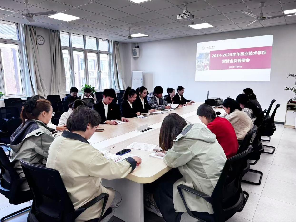 11月13日下午15:00,职业技术学院召开2025年度“弘扬雷锋精神优秀学生”金质奖章答辩会,院党委书记党松杰、副书记马冯莉以及全体辅导员作为学生评优工作小组成员出席答辩会。
