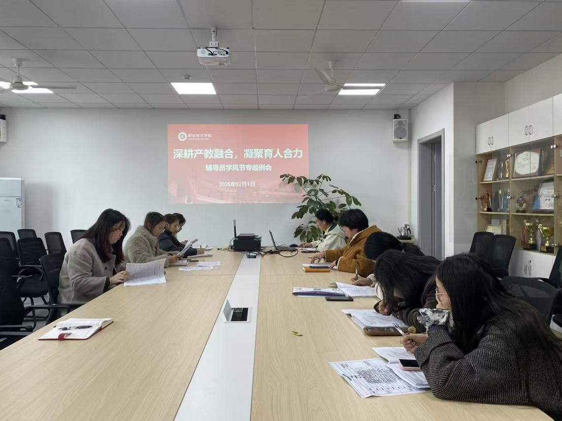 近日,职业技术学院召开辅导员专题工作例会,以深入研学《职业教育产教融合赋能提升行动实施方案(2023—2025年)》为抓手,紧扣临港产业园区发展定位与产业需求,明确辅导员在产教融合育人工作中的职责定位与实践路径,全力推动学院产教融合工作走深走实。学院党委副书记马冯莉主持会议,全体辅导员参会并展开深度研讨。