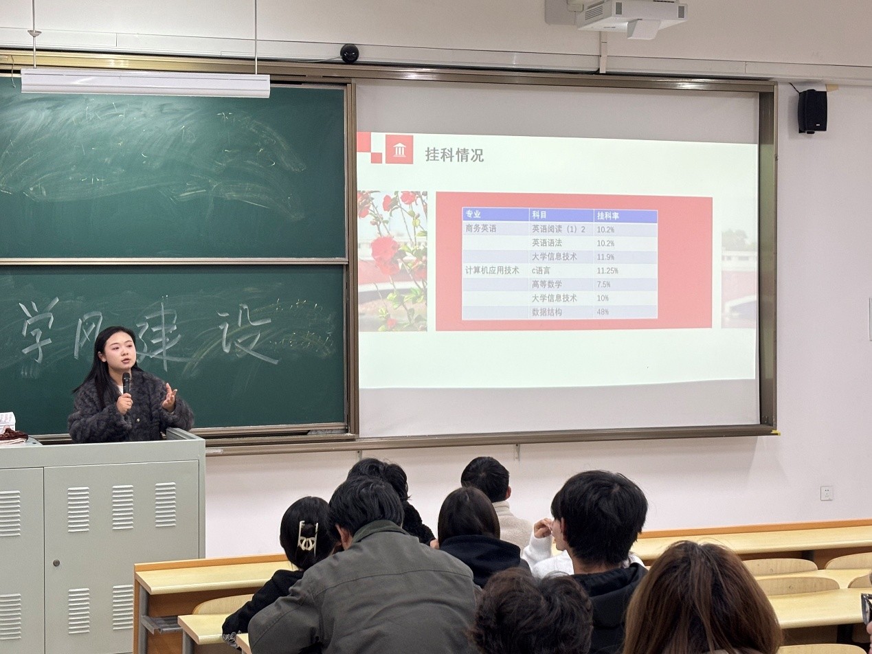 经验分享环节成为班会亮点。各班级邀请成绩优异的学长学姐及班级“学霸”,从“课前预习重点标记”“课堂无手机专注听讲”“课后错题复盘整理”等实用技巧入手,分享碎片化时间利用、学科难点突破等经验,为同学们提供可操作的“避坑指南”。针对挂科集中的公共基础课与专业核心课,各班还组建3-5人学习互助小组,制定“一对一帮扶计划”,明确预习、复习、模拟测试等阶段性目标,形成“比学赶超”的良性互动氛围。
