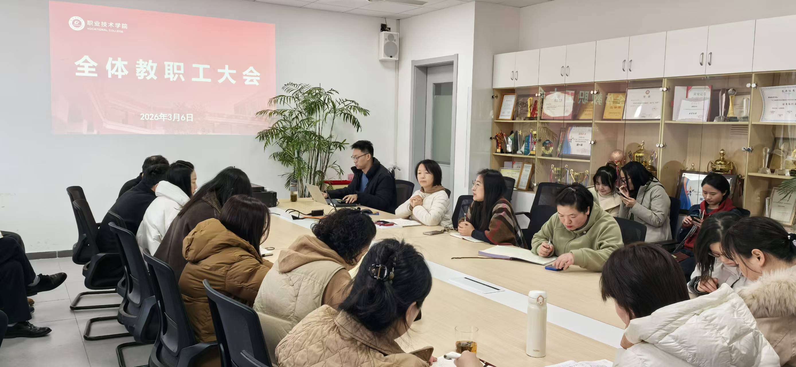 3月6日下午,职业技术学院召开新学期教研活动暨全体教职工大会,全面部署新学期党建、教学及各项日常工作,凝聚全院共识,明确发展方向。学院党委书记党松杰主持会议,学院领导班子成员及全体教职工参加会议。