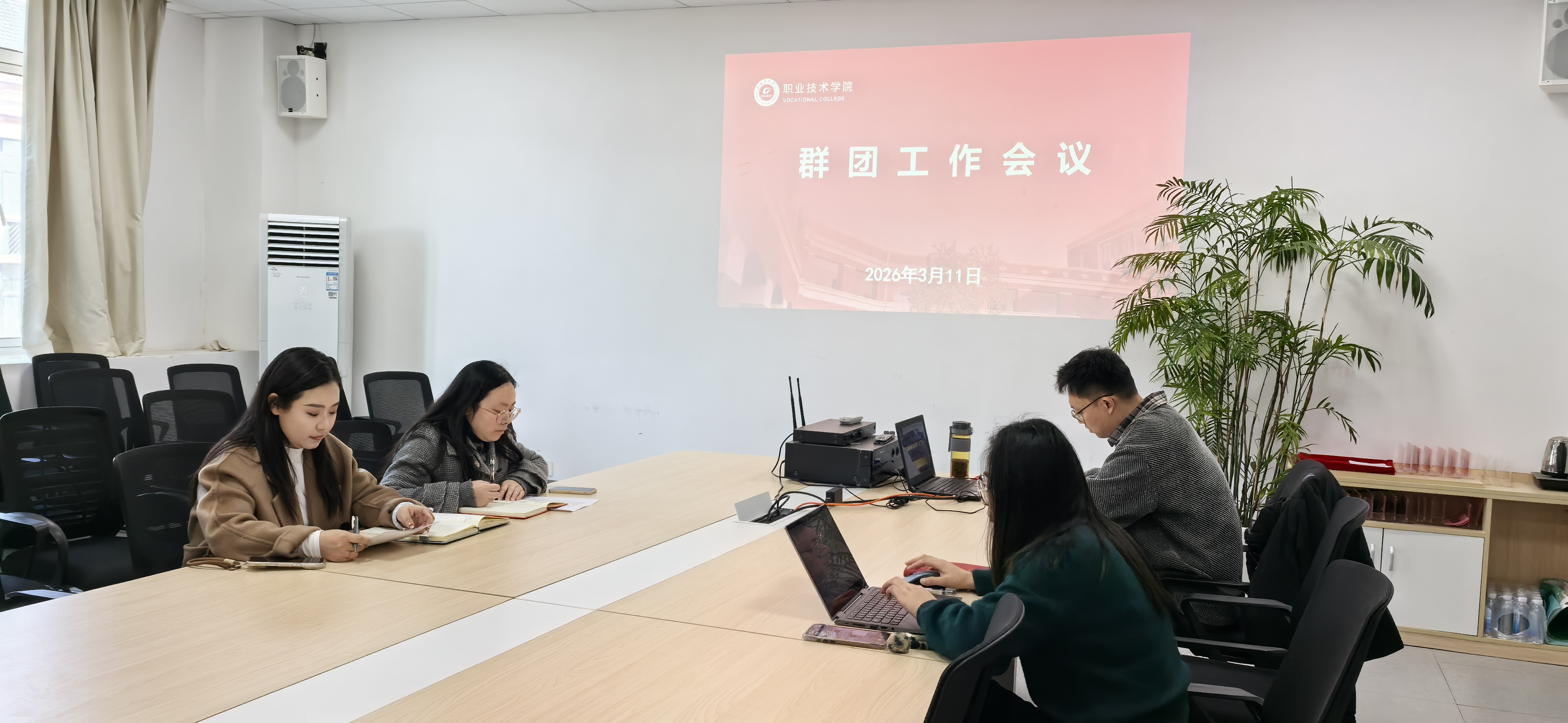 3月11日,职业技术学院召开群团工作会议。会议全面回顾与总结了2025年度学院工会、关工委及团学等群团工作成果,系统部署了2026年重点任务,为推进学院群团工作高质量发展凝聚广泛共识、指明发展方向。学院党委书记党松杰主持会议,分工会主席刘伟晨、专职组织员廖艺晗、分团委书记李彤等出席会议。