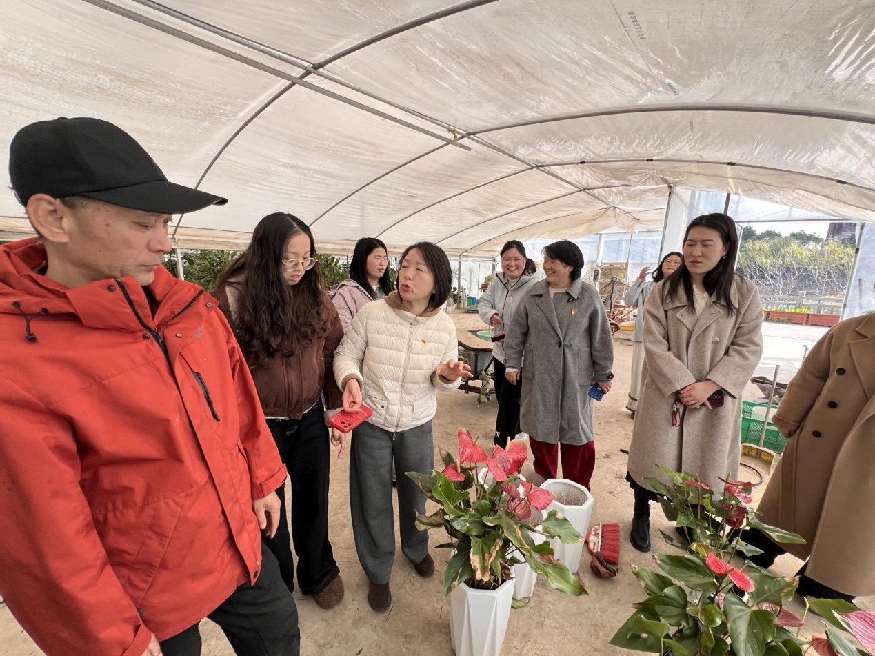 植树活动结束后,大家还一同参观了学校的花房。在花房里,绿化服务中心的工作人员详细介绍了各类绿植的品种、生长环境和养护技巧,从浇水频率、光照控制到病虫害防治,为大家上了一堂生动的绿植养护课。党员们认真聆听,不时提问交流,学习热情高涨。