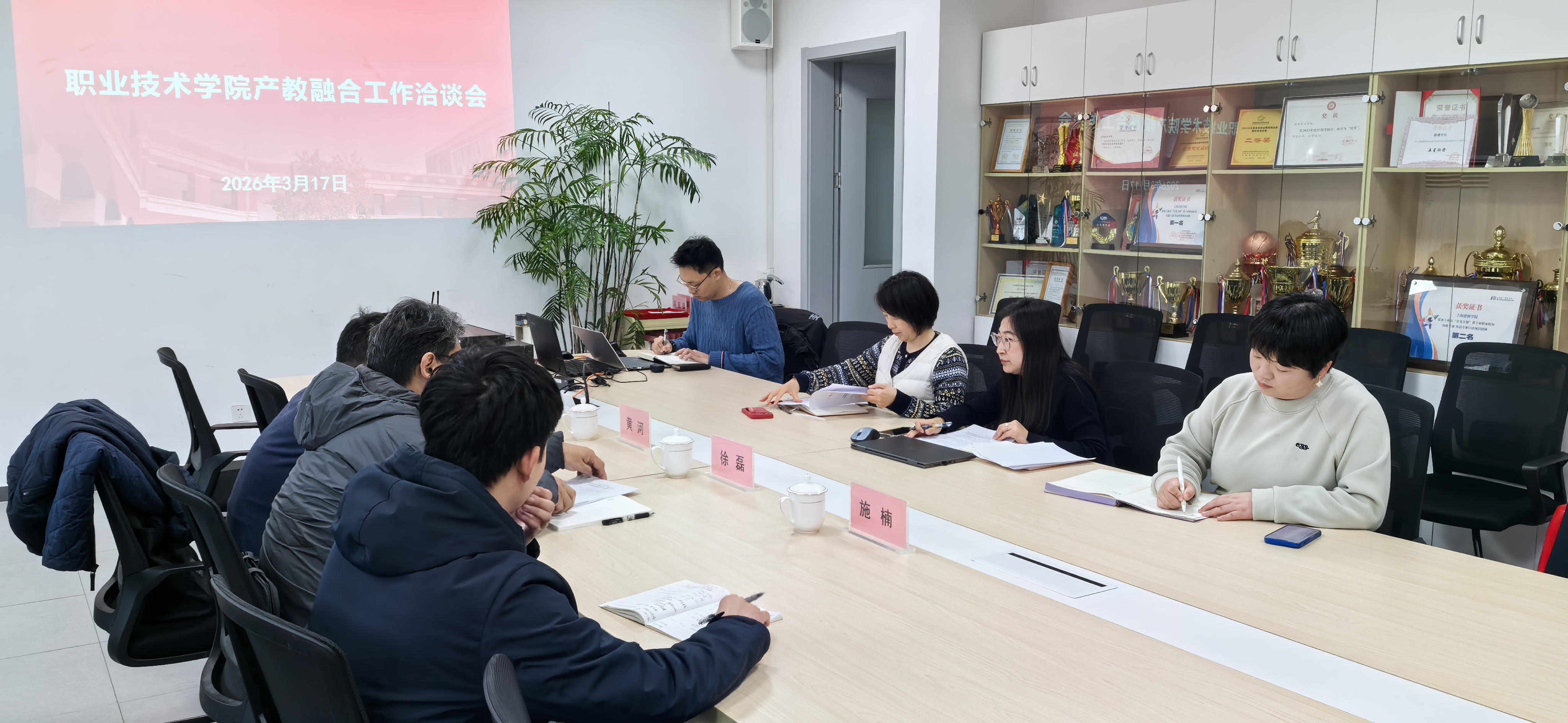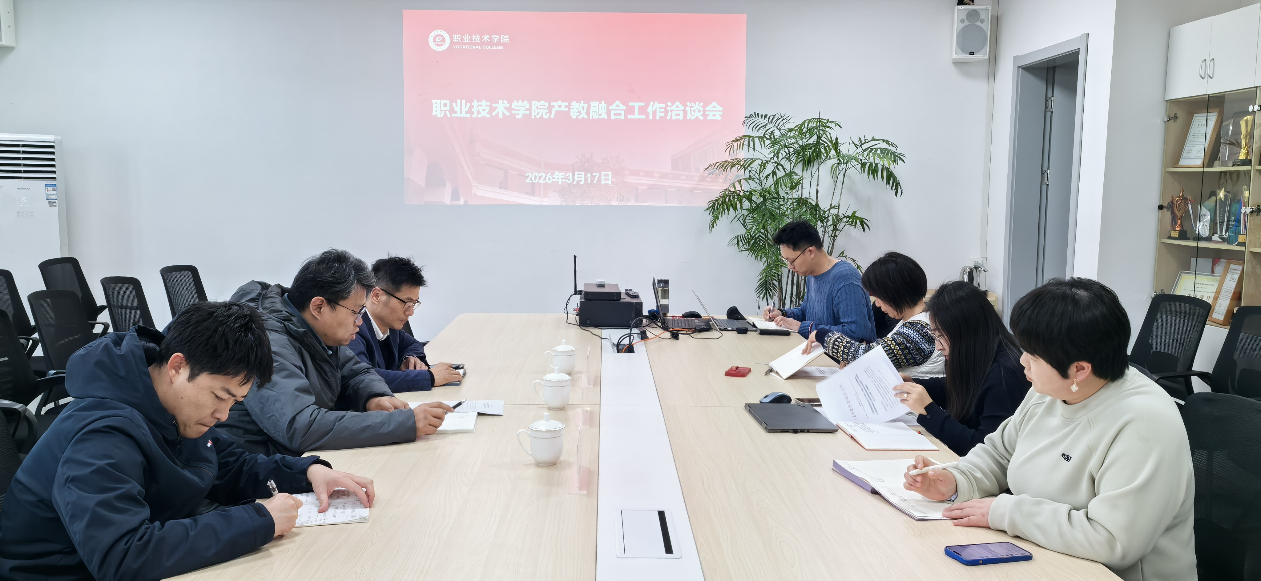 3 月 17 日,职业技术学院召开产教融合工作洽谈会。会议聚焦产教融合试点校申报与校企协同育人核心议题,系统梳理了当前项目资源与推进路径,为深化产教融合、助力校院两级高质量发展凝聚共识、明确方向。职业技术学院领导班子、产教融合促进中心主任徐磊,质量规划办公室副主任黄河出席会议,产教融合促进中心施楠老师陪同参会,会议由职业技术学院党委书记党松杰主持。