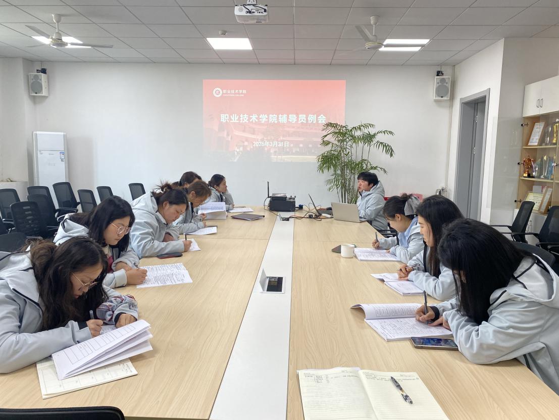 2026年3月31日,职业技术学院在419会议室召开第四周辅导员工作例会,院党委副书记马冯莉主持会议,全体辅导员参加本次会议。